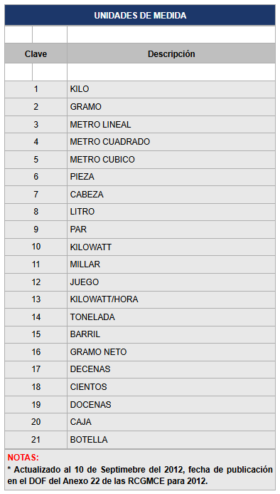 (Actualizado al 10 de Septiembre del 2012, fecha de publicación en el DOF del Anexo 22 de las RCGMCE para 2012).