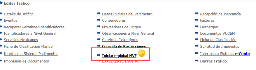 Los datos básicos del pedimento deben ser capturados en la referencia de tráfico, ya que son los campos esenciales que se envían para iniciar la interfaz con e-globalmve.mx.